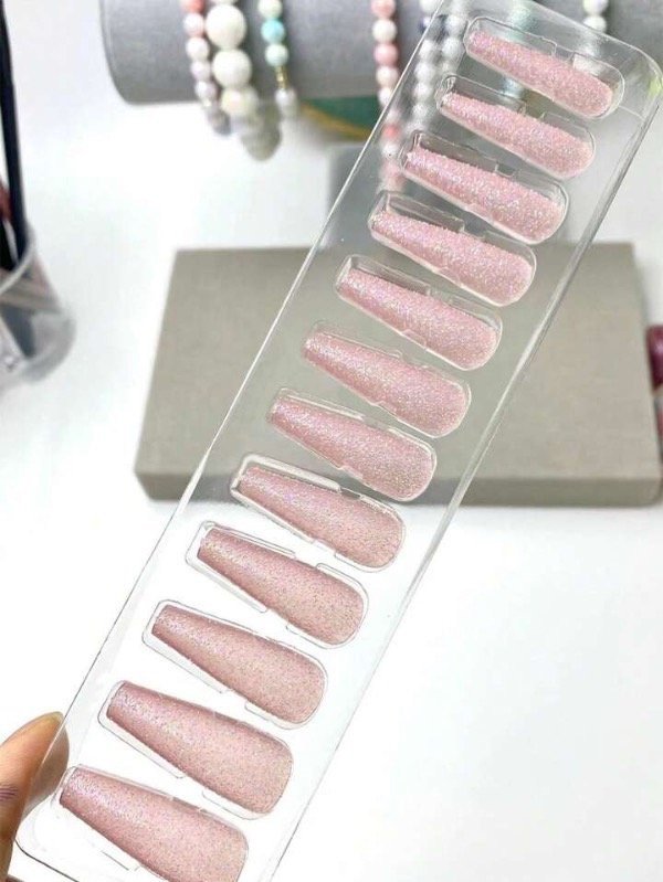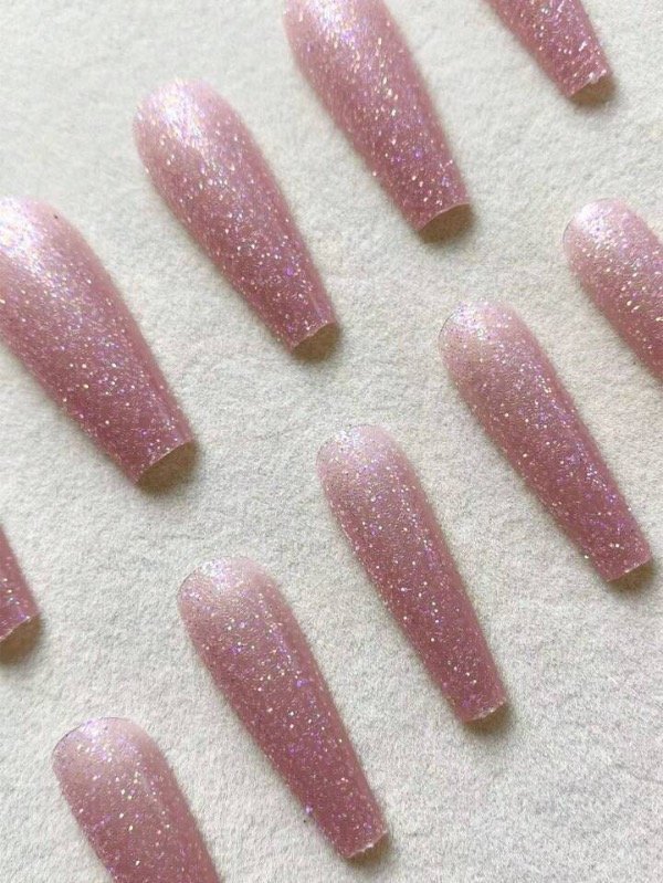 Uñas postizas rosa glitters